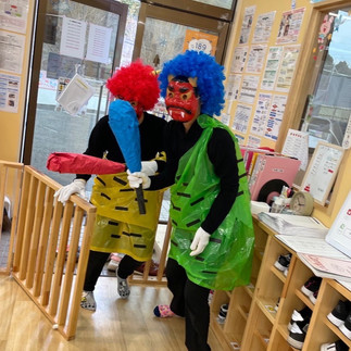 先日、保育園に赤鬼さんと青鬼さんがやってきました👹